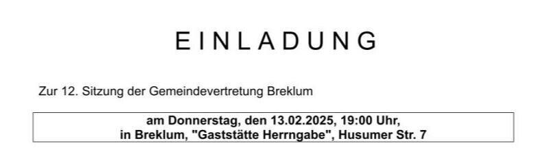 Am 13.02.2025 um 19:00 Uhr ist es wieder so weit: Die 12. Sitzung der Gemeindevertretung Breklum steht an – und du bist herzlich eingeladen, dabei zu sein.