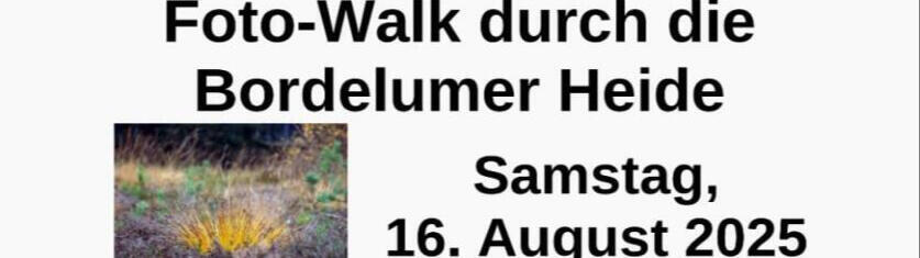 Am Samstag, den 16. August 2025 lädt der Ortskulturring alle Fotofreunde zu einem besonderen Erlebnis ein: einem geführten Foto-Walk durch die beeindruckende Landschaft der Bordelumer Heide.