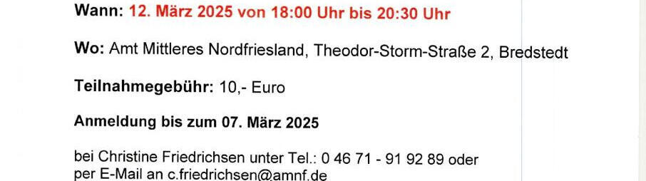 Bitte bei Christine Friedrichsen unter 04671 919289 oder per Mail an